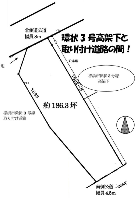 備 考 環状3号高架下と取り付け道路の間。横浜市計画道路予定地隣接。保証会社利用。更新時、更新料 1ヶ月。賃貸期間中の除草、地面の凹凸管理については借主にて行って頂きます。